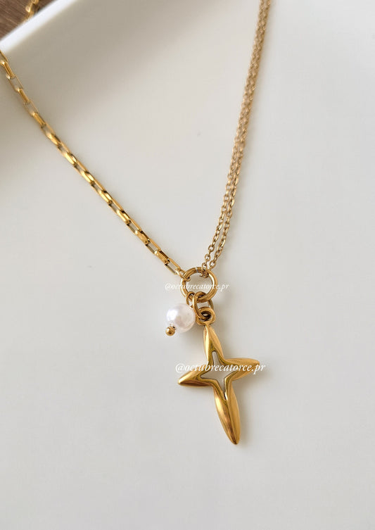 Golden Cross and Pearl Necklace