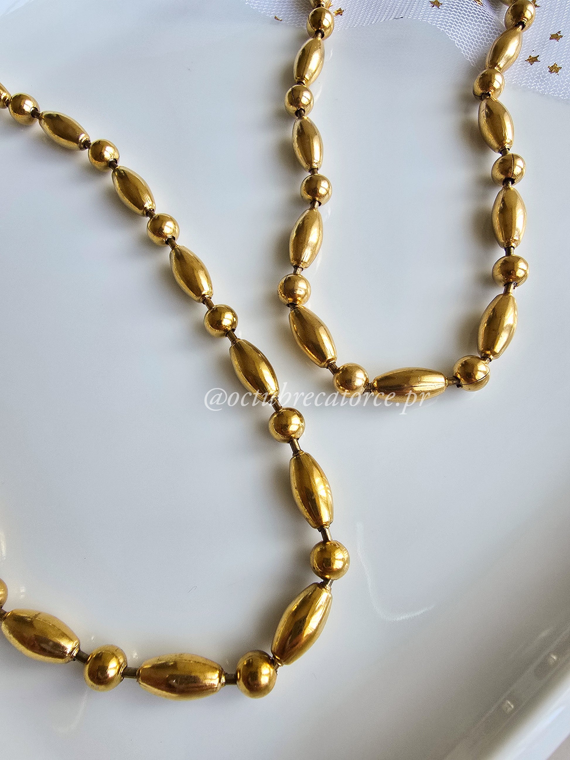 Gargantilla estilo choker, Medidas: 14" a 16". Stainless steel (316), Gold Plated (18k). Resistente al agua